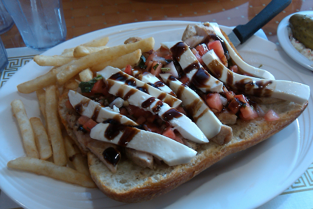 The menu features things that would be typical of diner food: breakfast items, sandwiches, soups, salads, wraps, burgers, desserts, just to name a few. I have only seen a small selection of their dishes from when my friends and I order, but it all really looks (and sounds) appetizing. I ordered the Chicken Bruschetta sandwich, which was grilled chicken, mozzarella cheese, tomato basil, and balsamic vinaigrette all served over a toasted hoagie roll, and it tasted fairly good, with an interesting flavor combination. In past times, I’ve ordered their Irish Nachos, which I have really come to love. Crispy waffle fries layered with melted cheddar cheese, diced tomatoes, corned beef, and a bit of jalapeño peppers for some kick, and it’s an explosion of amazing in your mouth (or perhaps it’s because of the fact that I was extremely hungry every time I went to the diner late at night!)