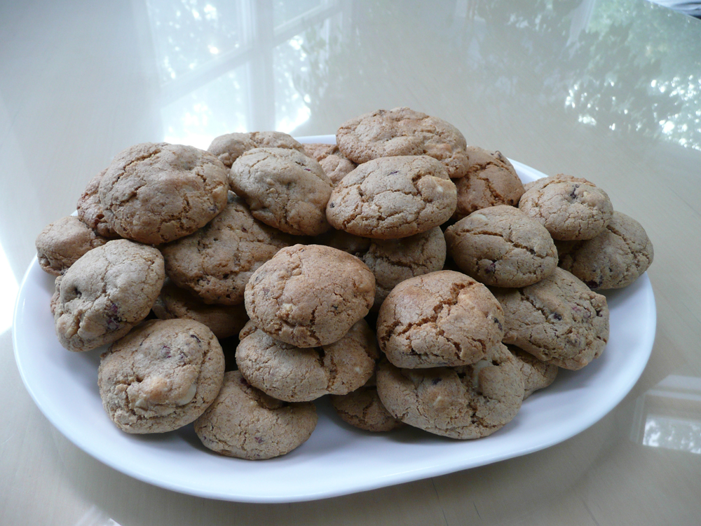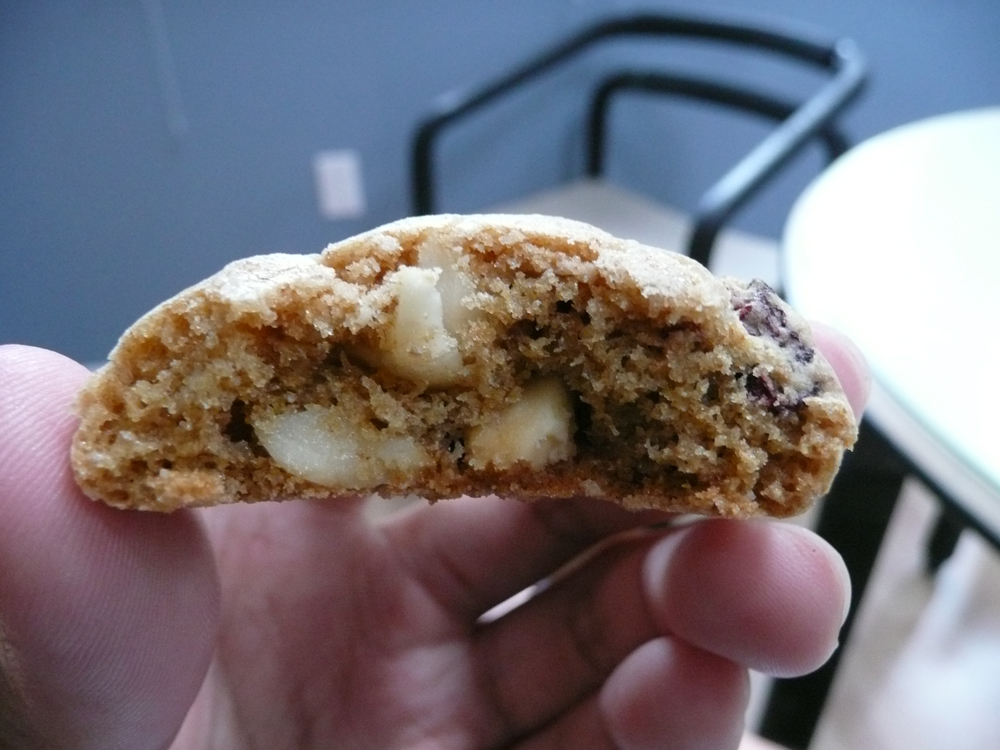 I opened up my pantry today and saw a nice set of macadamia nuts sitting on the shelf. Right underneath it, there were some dried raspberries as well, and then my mind started to get thinking. Thus, white chocolate raspberry macadamia cookies were born.