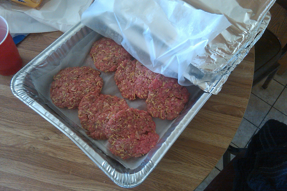 35 BBQ bacon cheddar burgers and a 7″ x 11″ pan full of a six-layer chili cheese dip made with Skyline Chili, cream cheese, and shredded sharp cheddar cheese. I’m getting hungry just thinking about it.