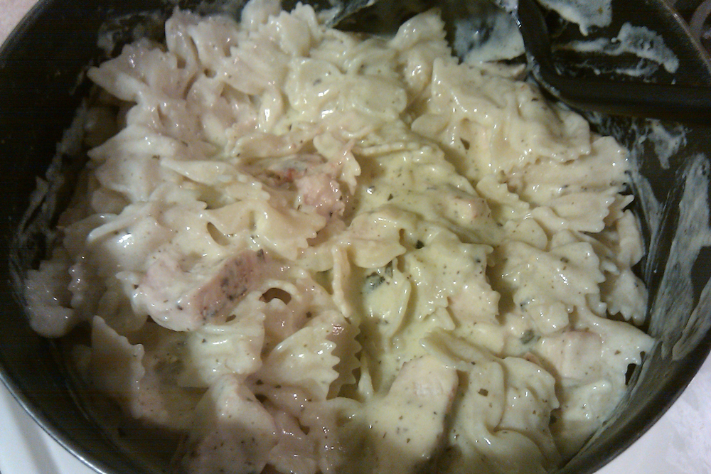 BOWTIE PASTA WITH CHICKEN PESTO ALFREDO
