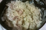 Take the butter in a large saucepan and melt it down over medium heat. While that is going, take a little bit of the heavy whipping cream and mix it together with the egg yolk, setting that aside when you’re finished. When the butter is fully melted, start to add the heavy cream and milk, whisking while you are doing it. After it’s thickened up a little bit, add in the Parmesan cheese and whisk more until melted. At this point, add in the salt, pepper, and garlic powder, tasting while you are doing so until it reaches a point that you are satisfied with the taste. Then, add in the cream/egg yolk mixture and simmer the sauce at medium-low heat for 4 – 5 minutes. When that’s done, add in the 3 tablespoons of pesto sauce and stir it up. If you really want to add more pesto than that, give the sauce a try at each addition, ensuring that the pesto doesn’t overwhelm the alfredo. Take another taste of the sauce and see if you need to add more salt, pepper, or garlic powder, now that all the ingredients have been incorporated in the sauce. Set that pot aside on another burner on low heat. In another large pot, boil some water and start to prepare the bowtie pasta, cooking according to the box’s instructions.