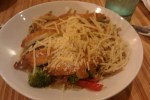 The restaurant delineates their menu into three separate areas, each illustrating the flavors that they seek to capture in those dishes: American, Mediterranean, and Asian. For example, you’ll find your Mac & Cheese in the American category, Pad Thai or Japanese Pan Noodles in the Asian category, and then Penne Rosa or Tuscan Linguine in the Mediterranean category. I have very frequently ordered from the Mediterranean category, as I really like a lot of the flavor combinations that work so well with the fresh ingredients. The diversity of the menu really gives you a nice spread of options, and that sometimes makes it difficult to choose just what to get sometimes. All of the food is cooked-to-order. When you place the order for your dish, you specify the dish that you want, as well as an additional protein such as chicken, beef, shrimp, or meatballs, to complement the dish (it does cost extra). Then, you sit down at the table and in about five to seven minutes, they bring out the food, piping hot from the pan.
