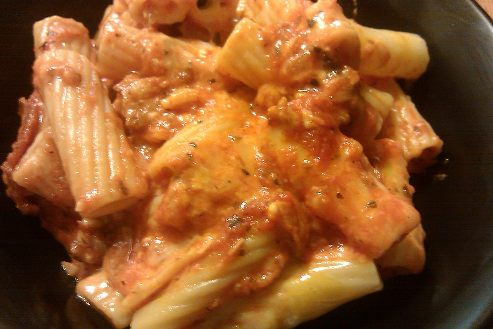 I elected to go with a rigatoni casserole dish, made only with pasta, pasta sauce, onions, bacon, and some shredded cheddar cheese. I mixed the minced onions and fried bacon into the pasta sauce that we had bought from the store, heated the oven to 350 degrees, and layered the casserole dish with pasta sauce, rigatoni, cheese, and repeated those three layers again. I threw the covered dish into the oven for 20 minutes, and when it came out, it looked really nice.