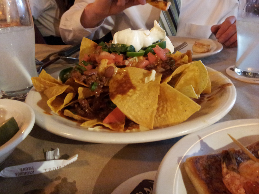 Tortilla chips covered with bison chili, tomatoes, onions, jalapeño peppers, and Pepper Jack cheese.