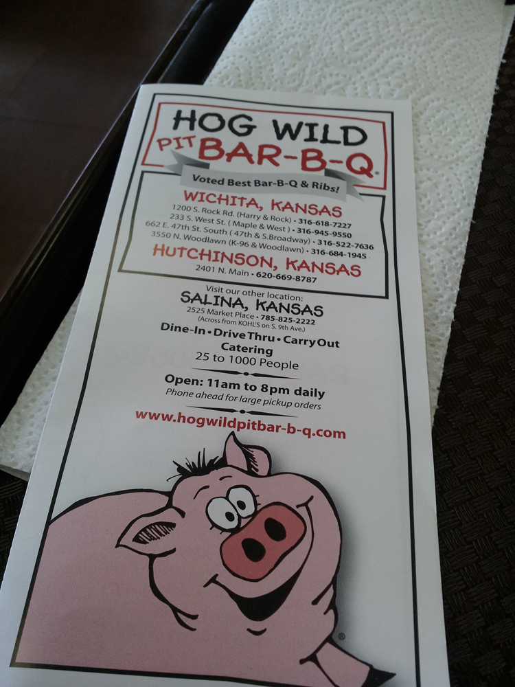 It was the second day of our Design/Build/Fly competition, and we were all getting really hungry for some lunch. One of our friends who was working out in Wichita made a suggestion to head over to Hog Wild since we were all still in the barbecue mood.