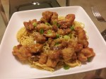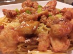 When plating, put down the noodles first, and then put your chicken pieces right on top. Take your plate back over to the bowl of sauce, and use that to drizzle a bit of extra sauce right on top to lightly coat the chicken. Garnish with more sesame seeds and scallions, and you’ve got yourself quite the fancy-looking dinner.