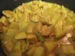 - The concoction of curry chicken sitting on the stovetop.