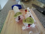 - Our very first roll, with Andes mints and raspberries, topped with a slice of kiwi.