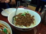 The two dishes I was not as impressed with were the scallion pancake and our other noodle dish. I’ve definitely had scallion pancakes at other Chinese restaurants that tasted like they were hand-rolled and made fresh, but these tasted more like store-bought to me. The other noodle dish, known as za jiang mein, is thinner wheat noodles topped with chopped pork that has been stir-fried with a soybean paste. I thought the flavor was there, but I expected it to have more sauce to accompany everything, as that is how I’ve eaten it at other restaurants before.