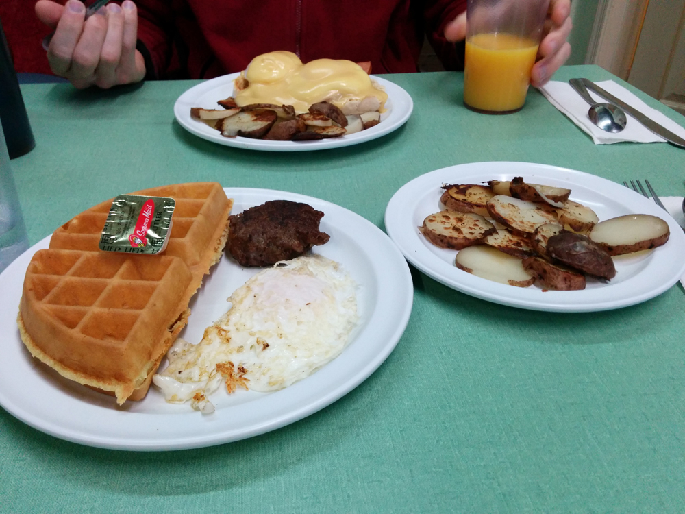 I was very pleased with the $6 price tag on my breakfast combo, since I thought that it was certainly worth the money. Andrew’s eggs benedict with home fries, on the other hand, was closer to $10, which seemed a little overpriced (probably would have been more reasonable closer to $8 or so). Seems like item pricing could be hit-or-miss.