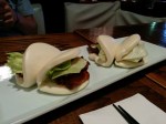 - Two orders of the Hirata bun appetizers, one with pork and the other with chicken.