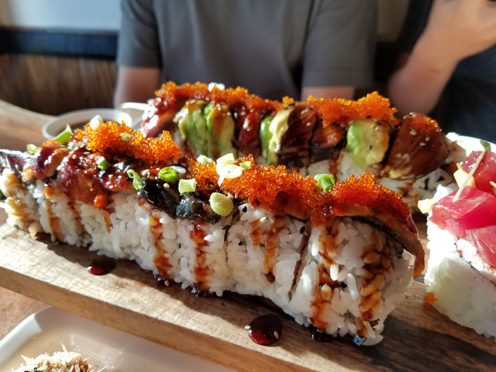 Out of all of them, however, I think that my favorite is going to have to be the TNT Roll. Shrimp tempura and crab wrapped with avocado and topped with fresh ahi poke, served with a drizzle of unagi sauce and agave honey. It’s a properly named roll, because it’s an absolute explosion of flavor in your mouth. The ahi poke had a deep sweet and soy sauce flavor from its marinade, with the shrimp tempura giving the roll a crunchy texture and mixing well with the slightly sweet crab. The unagi sauce and agave nectar also helped give the roll a nice sweet and savory aftertaste.