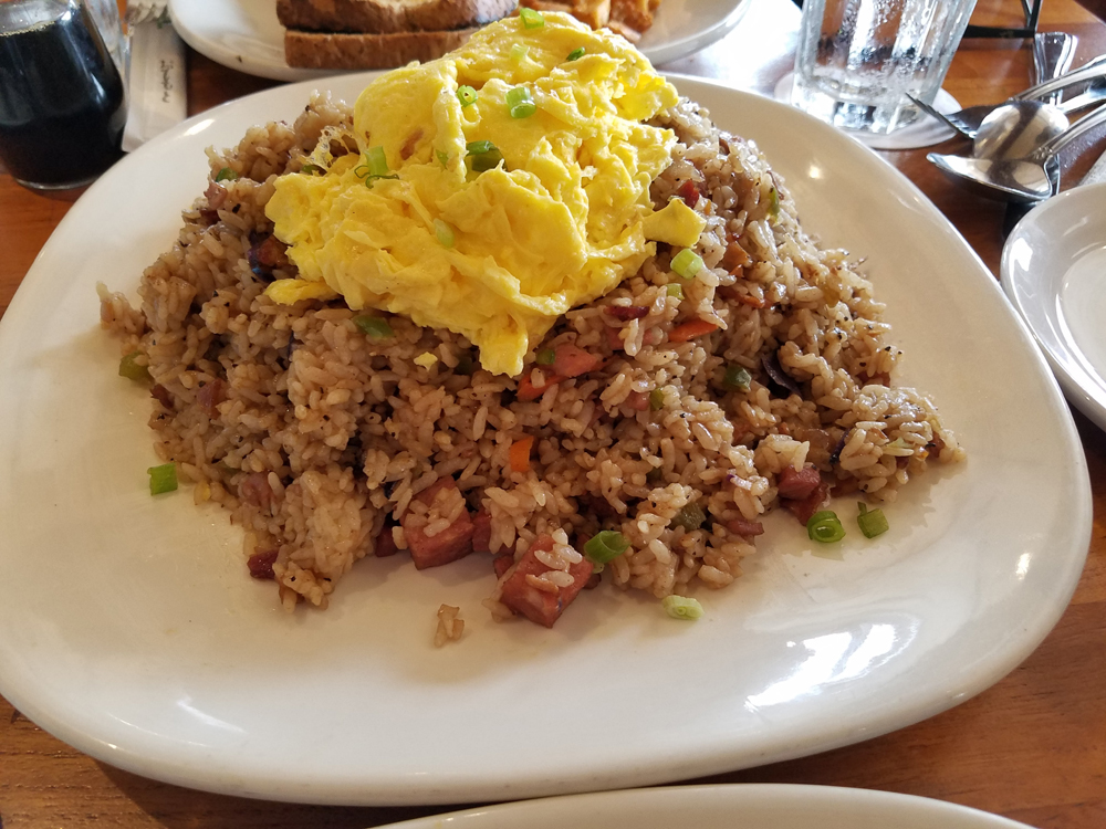 The breakfast menu at Koa’s features a good spread of items, ranging from pancakes to omelettes to French toast, while their lunch menu has some tasty sounding burgers and sandwiches. We had arrived just in that transition period, where there was about 20 minutes left to order breakfast and the restaurant had just started serving their lunch options. It was a good dilemma to have, and it seemed like everyone was in a breakfast mood. My dad and I ordered omelettes while my mom and brother decided to split a plate of fried rice.