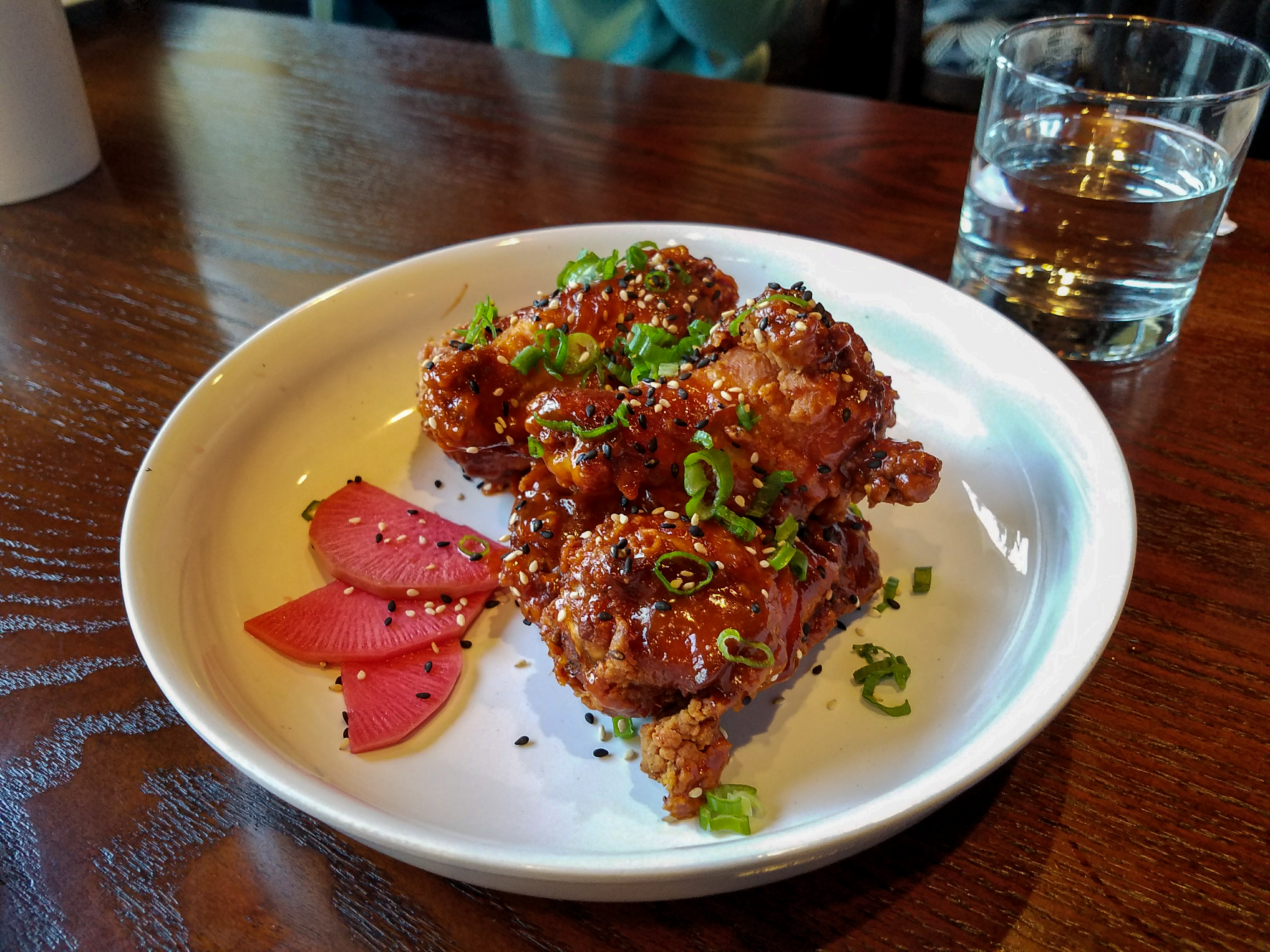 Crispy jumbo wings tossed in a Gochujang chili sauce.