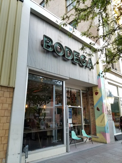 I can safely say that this was a very unique dining atmosphere that I hadn’t been to before. Even though the space started to fill up with more people as the night went on (it was a Friday night, after all), it never felt like the place was crowded. The bar served up an assortment of cocktails that each sounded like an intriguing combination. I’m not sure whether or not these drinks also mirrored what was served upstairs at Bodega.