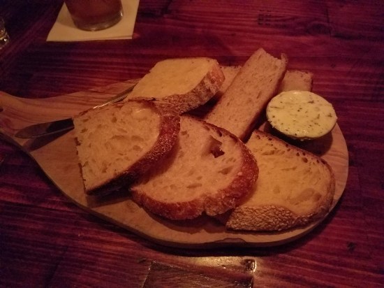 It didn’t take long for our first plate of food to arrive, which was our bread appetizer. Slices of artisanal bread baked in-house, served on the side with some whipped garlic dill butter, this plate was enough to stave off our initial hunger. The bread was nice and soft, and the butter added a nice, savory flavor to compliment the natural taste of the bread. In the end, I think all the bread pieces were gone by the time that our entrées arrived.