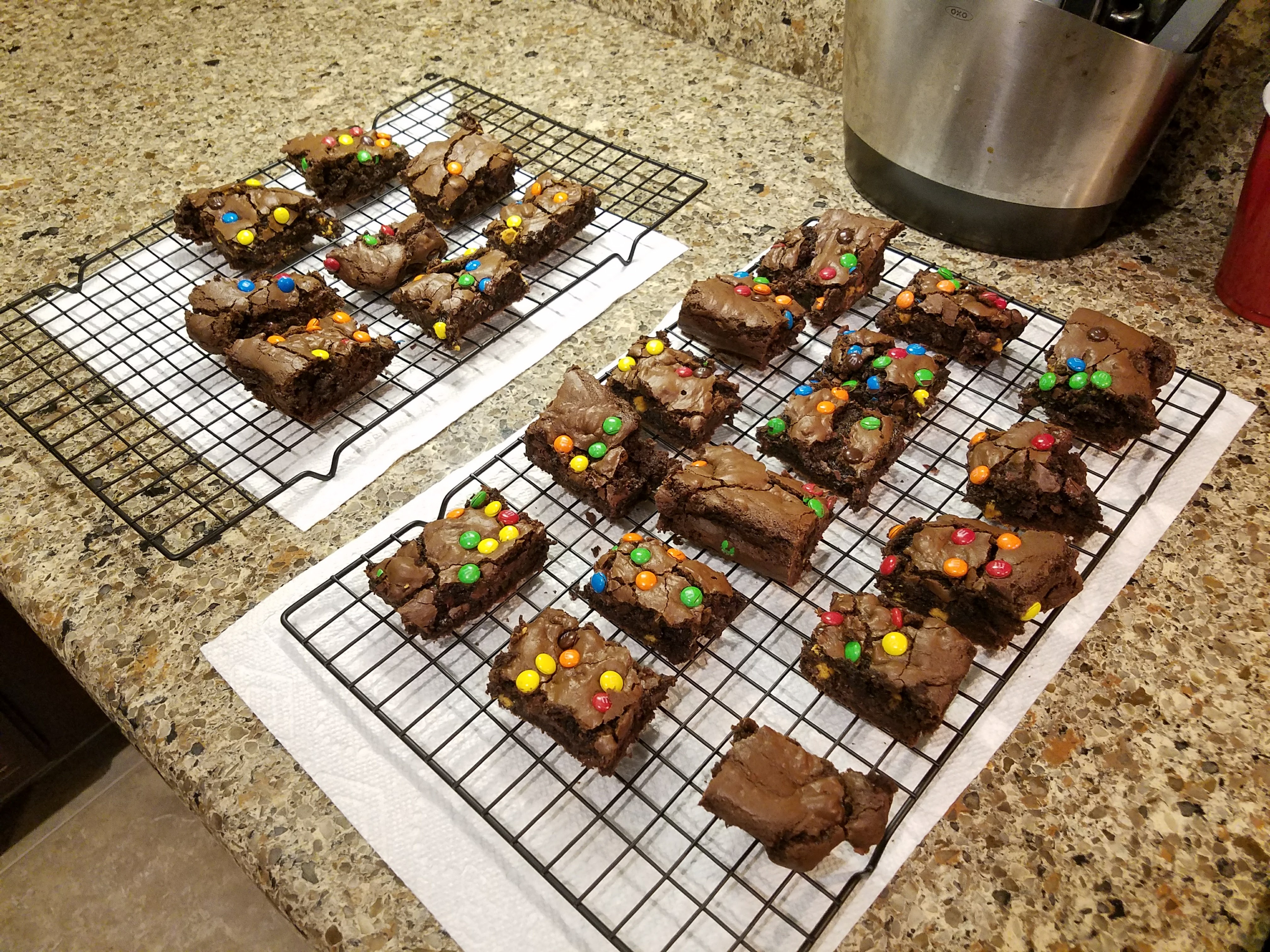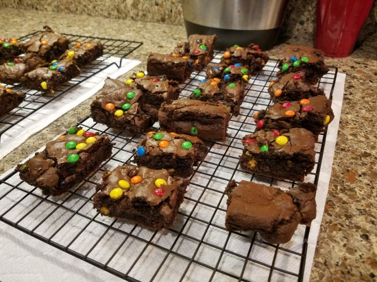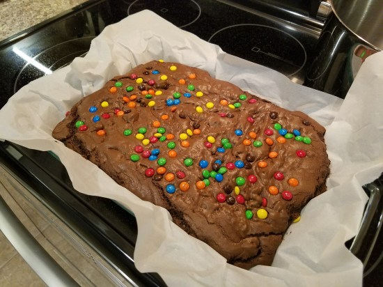 With a light, crisp shell on the top and moist, cake-like consistency in the middle, the brownies aren’t overbearingly sweet. It’s a balanced chocolate flavor (between the chocolate chips and M&M’s) with the occasional butterscotch flavor showing up as well. The brownies aren’t too rich either, but two squares was usually enough to tide me over for a little while. Give these brownies a try and I’m sure that your sweet tooth will be sure to thank you.