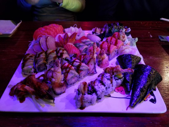 ** Dragon Roll (pictured center left) **