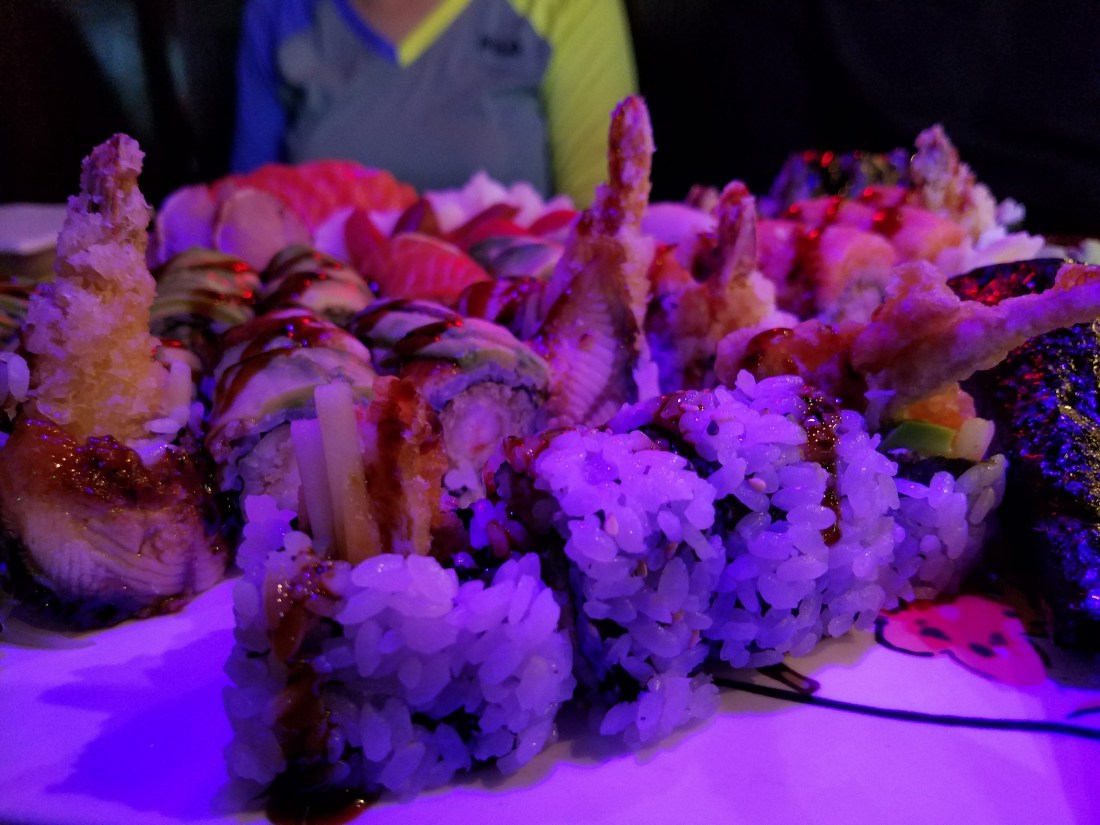 ** Dragon Roll (pictured center left) **
