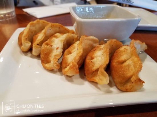 Pieces of pork gyoza, fried golden brown and served with ponzu dipping sauce.