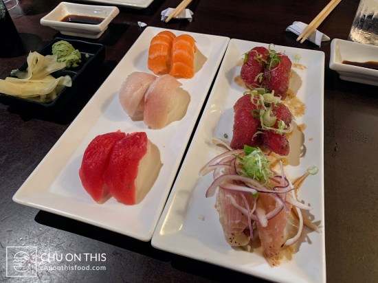 ** Seared Garlic Tuna Nigiri (pictured top right) **