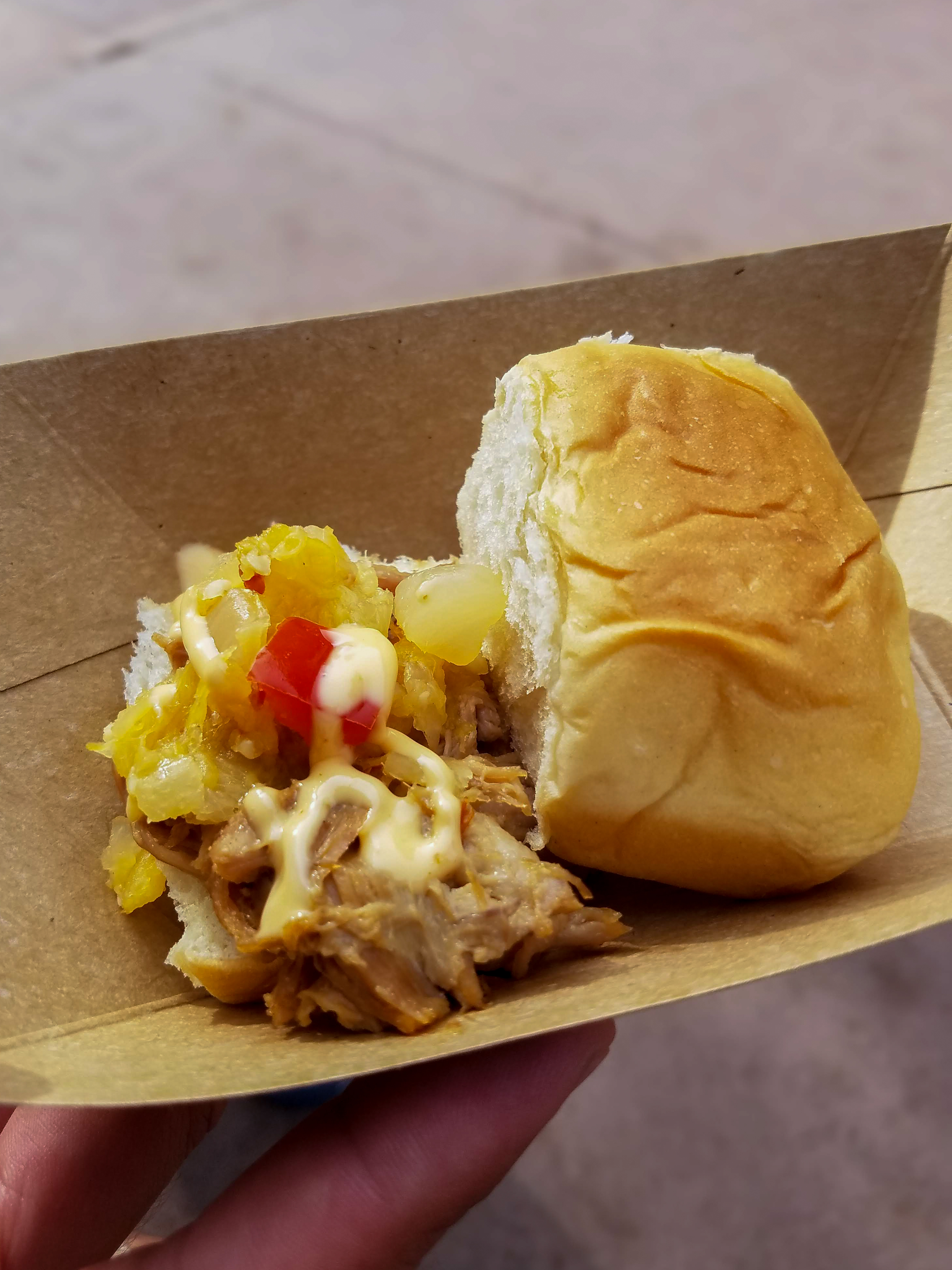 Shredded kalua pork served with a sweet & sour pineapple chutney and spicy mayo on a King’s Hawaiian roll.