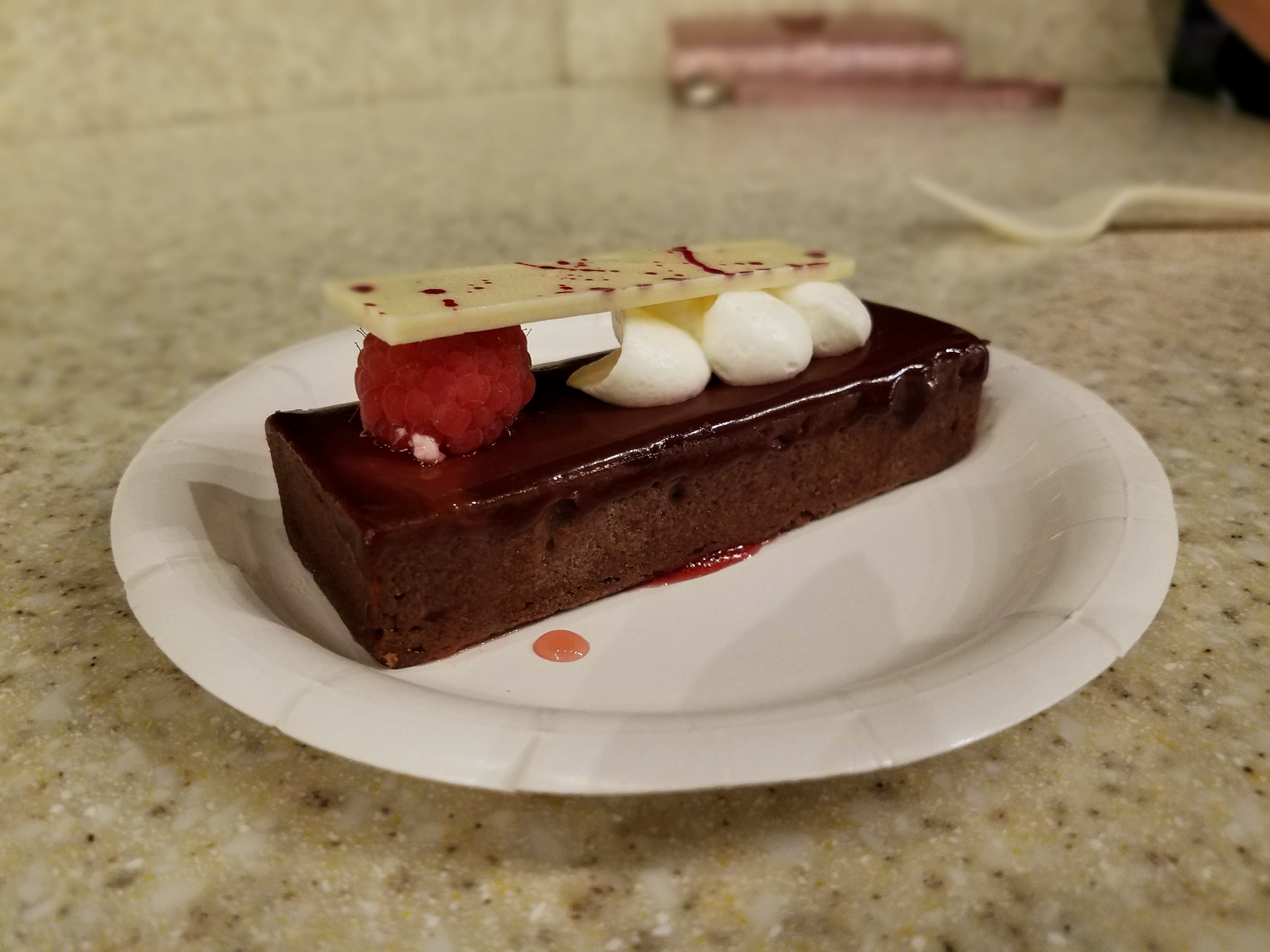 But first, it was time to open that second stomach reserved just for desserts. We made our way over to the Chocolate Studio booth, which had a surprisingly low number of people in line. We picked up both of the food items they were offering: the liquid nitro chocolate-almond truffle and sweet dark chocolate raspberry torte.