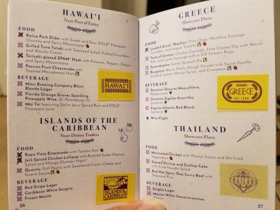 When you first enter into the park, display cases are set up where you can pick up a “festival passport.” That handy little booklet lists out all of the food and beverage offerings at each festival location as well as stickers in the middle to “stamp” your passport once you’ve visited. It’s about the size of your hand and can easily fit into your pocket, making it a great way to keep track of everything you’ve tried throughout the day and also chart the course for the next festival location you want to explore.