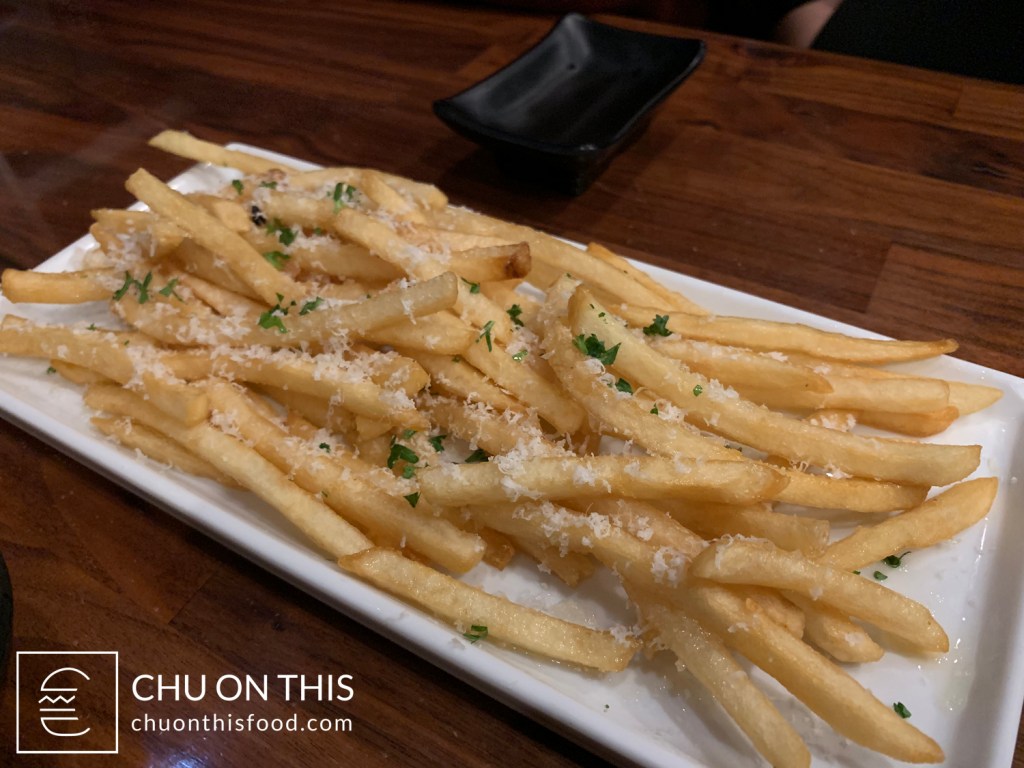 French fries tossed with truffle oil and garnished with finely shredded Parmesan cheese.