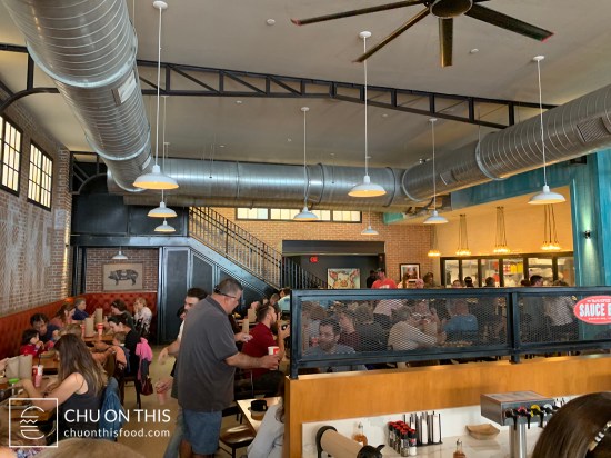 Depending on the weather, you had a choice for either indoor or outdoor seating. The dining room itself was pretty packed when we got there, which was honestly kind of surprising, since we got there in the middle of the afternoon. Luckily, the waitstaff had just finished cleaning off a tabletop as we were starting our survey of the dining room for open spots. The table itself also turned out to be a strategic location next to their “sauce bar,” where there were dispensers of four different types of barbecue sauces to use during your meal.
