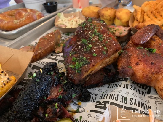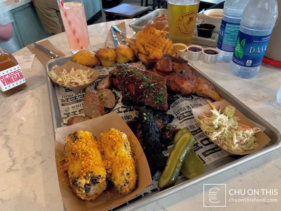 We couldn’t make up our minds on what to get, since just about all the barbecue on the menu sounded great. We were also fresh off food stops from Frontera Cocina and Chicken Guy!, and thought that splitting something would be the way to go. Lo and behold, we then noticed the Butcher Board offering at the bottom of the meats section.