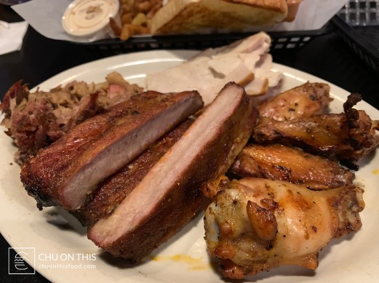 The smoke-fried chicken wings definitely take my #1 spot in favorites on the platter. Coming in second were the ribs, dry rubbed and then smoked to get that light caramelization on the outside, but still retaining a lot of moisture on the inside and being able to pull off the bone. As for the pulled pork and the smoked turkey, while both of them were also pretty tasty, I thought those items needed more assistance from the sauces to bring out a complete flavor.