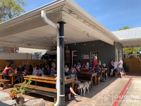 I enjoyed the open-air outdoor seating arrangement, which also caters to the relatively nice weather in Florida (when the summer heat isn’t melting you). There are quite a few long, wooden benches that make up the seating, which can accommodate groups both large and small.