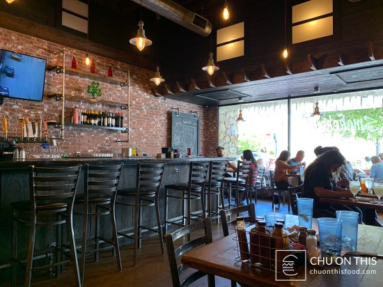 We stopped in on a Sunday, and the restaurant itself didn’t seem to busy. The thing that struck me as a bit odd as I walked up to the place was that the front window still had winter decorations up, despite us already being so far into spring. You take a step inside and you’re greeted by a lot of wood and brick elements, definitely giving an urban aesthetic to the place.