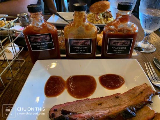 Flavor-wise, the food was excellent. The brisket was moist and had that smoky flavor as you ate into it. It really didn’t need any sauce to boost the flavor, but I did want to give some of the sauces a try and laid out a mini-spread on the plate. The baked beans also had that smoky flavor infused within it along with a nice sweetness. Bacon crumbles at the top helped to give it a bit of depth in texture. The tater tots were fried to golden perfection, crispy on the outside and just a bit soft on the inside.