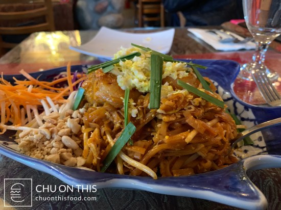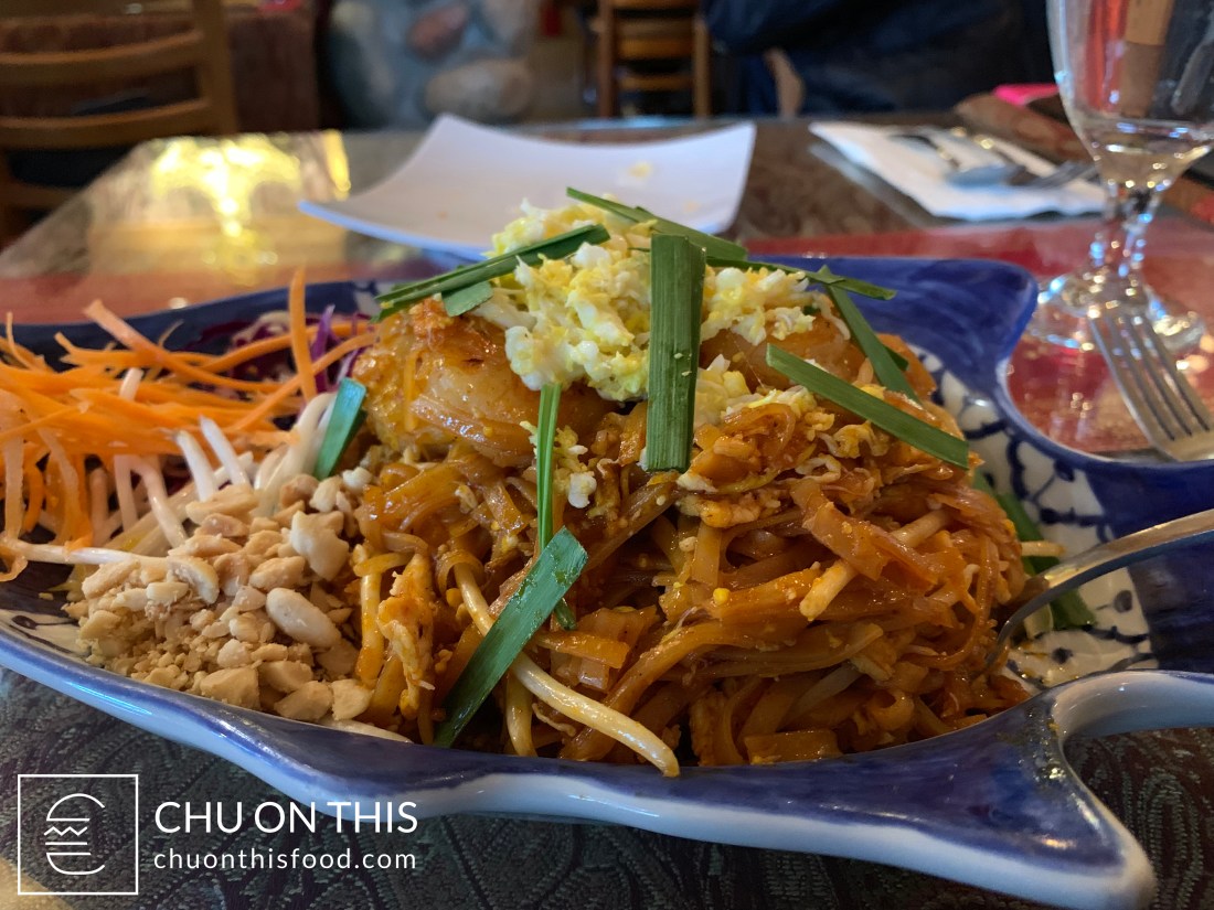 There was no shortage of food choices when it came to the menu items. Aside from the noodle, fried rice, and curry dishes, you also had your chicken, beef, and seafood entrées. For me, my Thai restaurant litmus test is always going to be how they execute pad thai. Even if the depths of flavor, amount of sauce, and spiciness might differ from place to place, I have yet to go to a Thai restaurant and not see pad thai on the menu.
