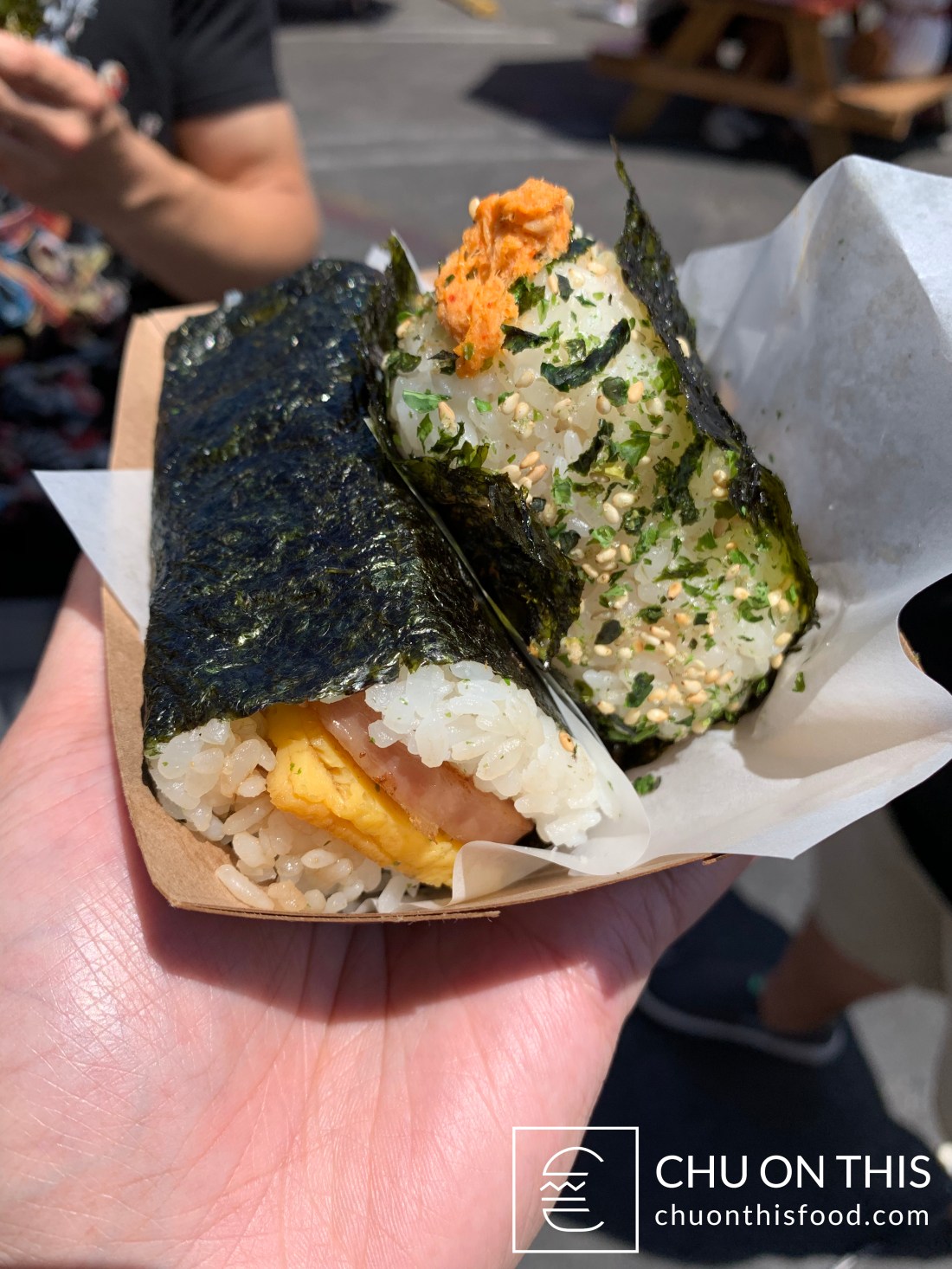 I’ll fully admit that I’m a bit of a sucker for Spam musubi, so that was definitely going to be one of the two that I ordered. The change-up this time was that I was going to add tamago to it, which is a Japanese-style grilled egg. For my second one, I decided to jump over to the seafood ones just to have some variety. Spicy tuna ended up being the one to make the final cut.