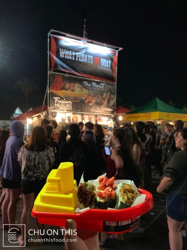 During that visit, we just so happened to stumble across the fusion musubis of What Floats Ur Boat (WFUB). Their food was so incredibly delicious, and the year-long wait for the chance to have some again was agonizing. But earlier this month, the wait was finally over.