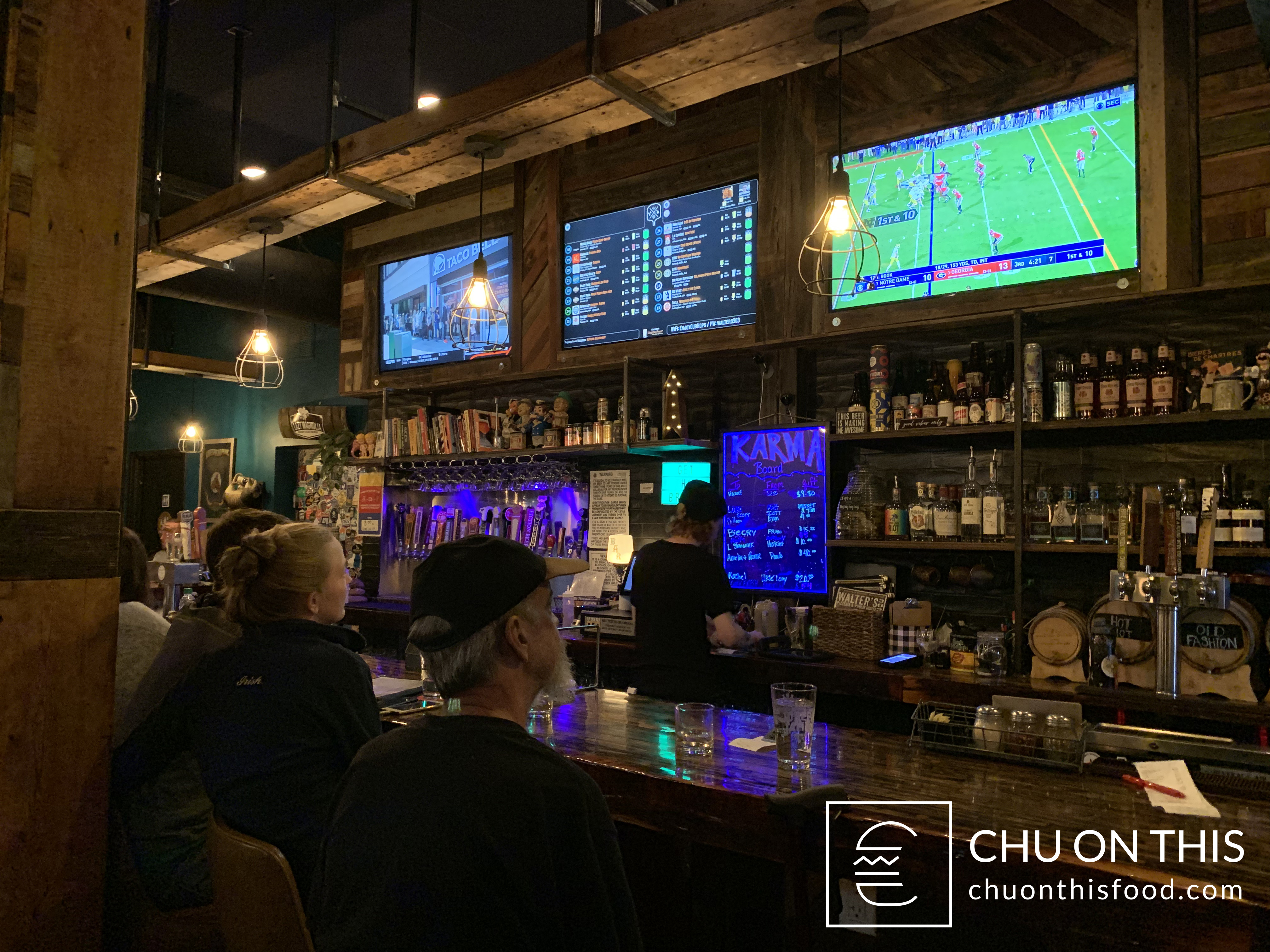 I was really digging the layout of the space, with the bar seating area also opening up to the outside via the “garage doors.” It made for a chill spot to grab a bite and take in some of the college football games that were on.