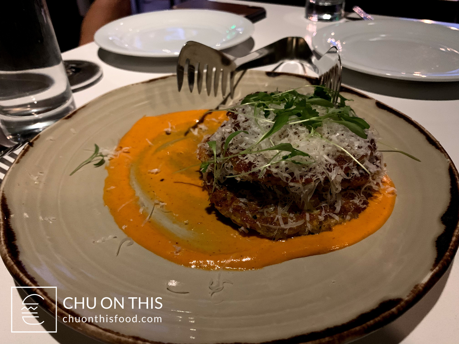 We had two members of the waitstaff come by to help us: Issac and Peter. We asked a few questions about the appetizers, and it was thanks to their recommendations that we went with the 7X Ranch Meatballs and the Zucchini Fritters. Both dishes had great presentation and tasted fantastic as well. But I think my vote for favorite appetizer went to the meatballs.