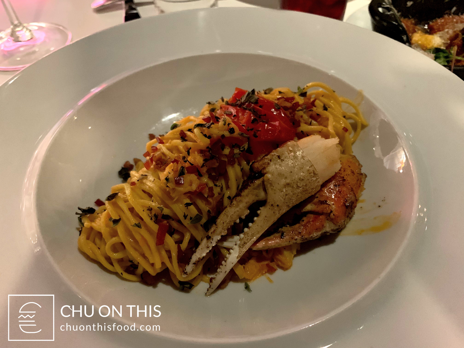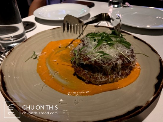 Visually, my Capellini pasta dish had a bit of that refined plating element to it. The capellini was rolled neatly in the middle of the plate, and had been tossed with crab meat, pancetta, smoked tomatoes, fresh tomatoes, and seasoned with oregano. The nice touch was also including two crab claws arranged on the side of the pasta, with the claw meat still intact. I really enjoyed the mixture of the savory and smoky flavor profiles with the ingredients, and the pasta was cooked al dente. What was nice about the dish was that the portion didn’t feel too heavy either.