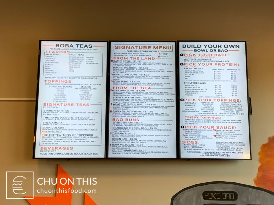 I could see how the menu could become overwhelming very quickly. In addition to all the options provided for the build-your-own bowl, a number of the “signature” bowls were also listed out that had a pre-set line-up of ingredients getting mixed together. Throw on top of that listing the various options of bao buns that you could get as well. That’s also only accounting for food, as boba tea had its own page on the side as well. It’s unfortunate that the menu isn’t online for people to look through, to possibly mitigate that feeling of getting put on the spot when you first walk in.