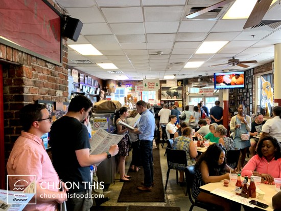 The popularity of this place was not exaggerated: by the time that we showed up, there was already a line out the door along the side of the building and starting to stretch down the block. Not only do you wait just to go inside the building but you also have to wait in another line to go up to the counter once you’re inside to order food. The staff did provide a number of menus to people to peruse while waiting, so hopefully by the time you got up to the counter, you knew exactly what you wanted.
