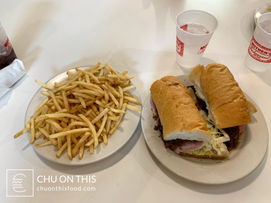 I’m all about trying the signature items from a place, so when I spotted on the menu that the Famous Ferdi po’ boy was one of their originals, I had my mind made up. One of the other guys on the trip, Brent, had been to the place before and mentioned that the Famous Ferdi was a good choice. We finally made it all the way down to the cash register and seeing all these other plates of food coming out of the kitchen had not swayed my decision, so the Famous Ferdi sandwich it was along with a plate of French fries.