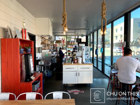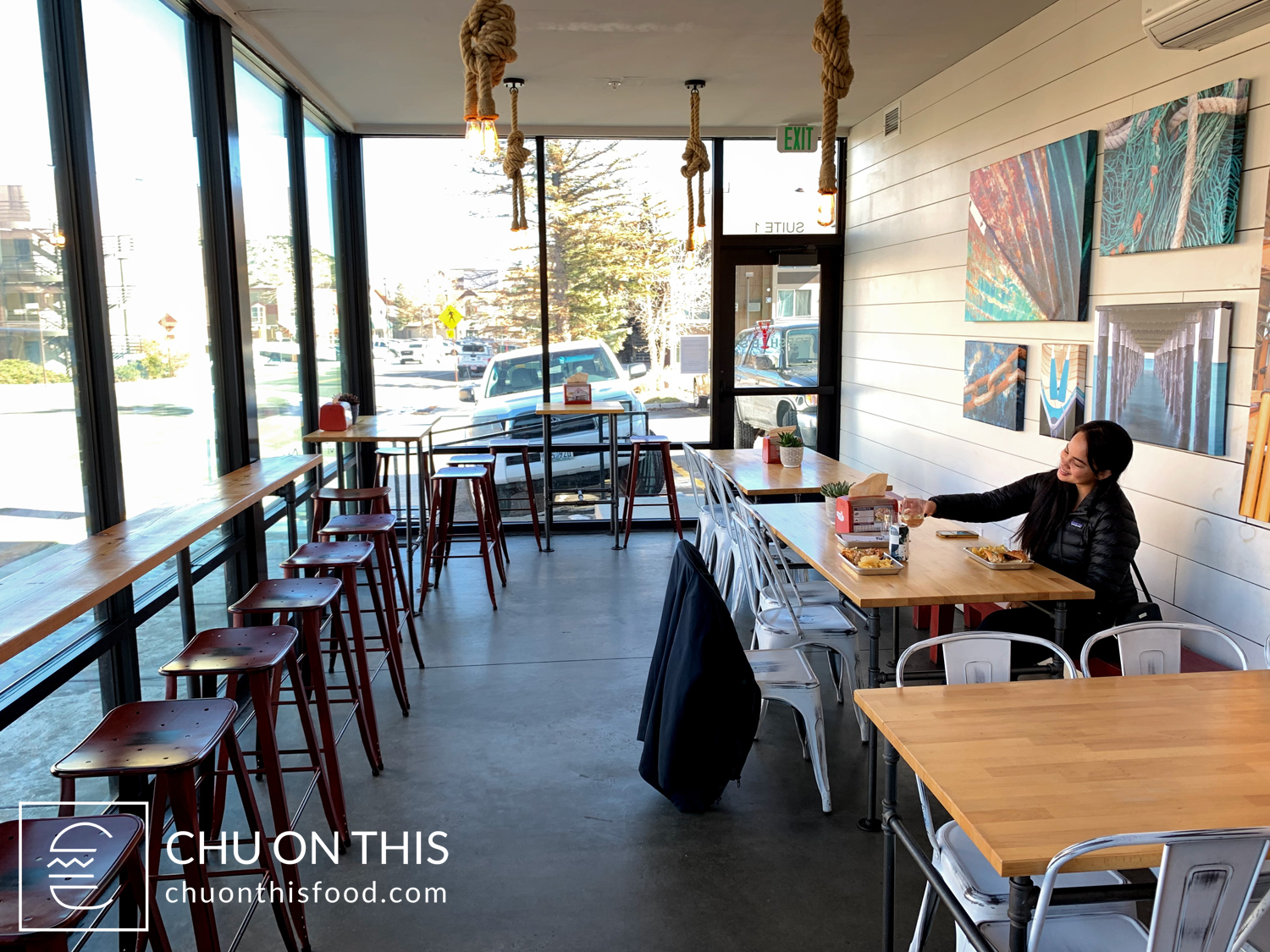 Even though the Park City location was only a relatively small space, they did a good job using the décor to invoke a sense of being somewhere out on a dock. Thick braided rope hung from the ceiling as a part of the light fixtures, the tabletops were all made with finished wood, and paintings that depicted the ocean hung on the wall. Even the white panel siding up on one of the walls reminded me of what you might see on one of those small shacks out on the dock.