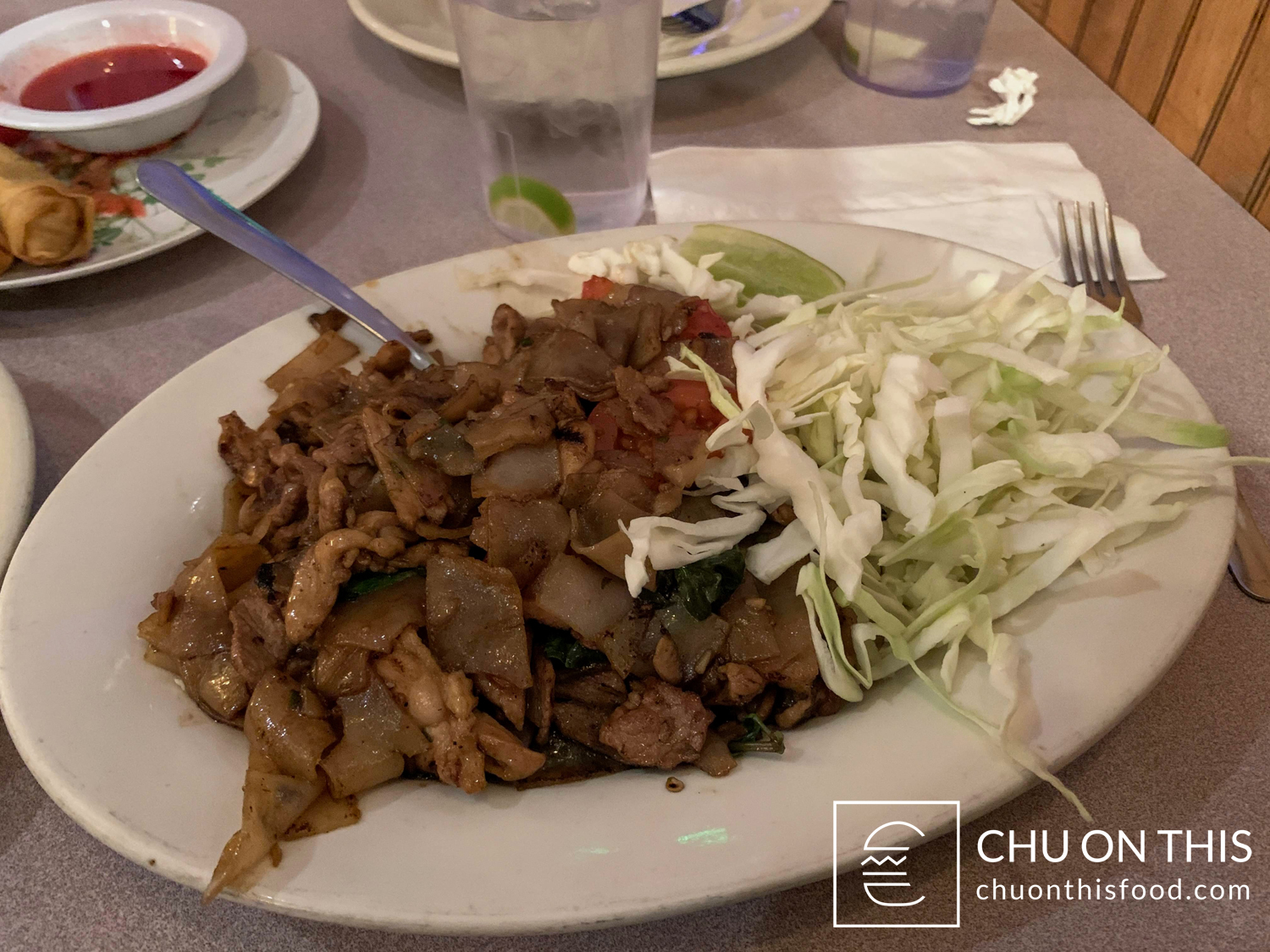 Next up came the drunken noodles, served on the plate with some shredded cabbage on the side. Maybe it was just some space filler for the plate, as that was something I hadn’t seen before. But the aroma of the Thai basil was very evident, and that’s a flavor that I find hard to resist. I had ordered mine with chicken, which was then sautéed with the flat rice noodles, Thai chili peppers, tomatoes, garlic, and Thai basil. Combine that with some soy sauce and fish sauce, and there’s definitely a nice mixture of flavors going on. Sweet, savory, spicy, you’ll get some of that with every bite. My only comment would be that the dish seemed a bit on the dry side, and could have used some more sauce.