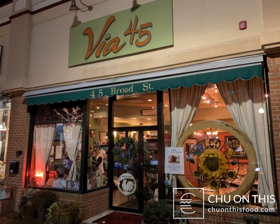 The Christmas holiday gave me the opportunity to fly back home to NJ and spend a few days with my parents. On my previous visits back home, they had frequently talked about an Italian restaurant in Red Bank called Via45 that they wanted to take me to. The timing previously hadn’t worked out, but this past holiday visit, everything seemed to line up. My parents had booked a reservation for the day after Christmas, so we showed up promptly when it was time for our 6:00 p.m. timeslot.