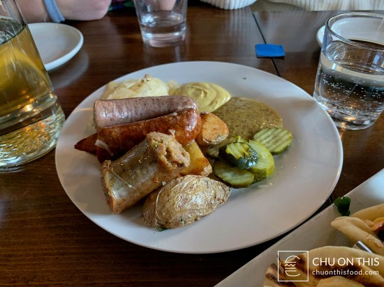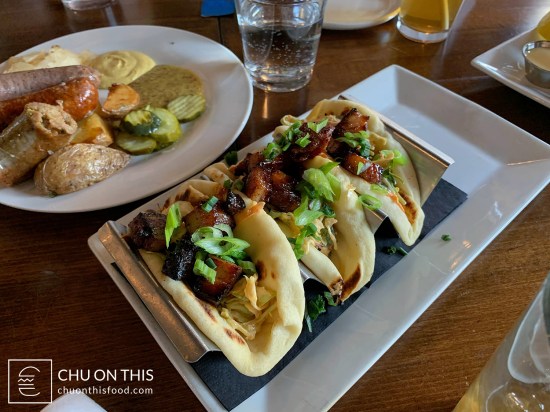 The sausage platter was a sampling mix of chorizo, jalapeño cheddar, and bratwurst, served with two types of mustards, pickles, and sauerkraut. I was only able to try the chorizo and bratwurst with some of the spicy Dijon mustard, and those were solid as well. It was the Burnt End Flatbreads, however, that probably left the strongest impression for me. Taco-sized naan flatbreads were layered with coleslaw, a sweet chili glaze, along with some chunks of burnt end pork belly. It was a really good mix of sweet and savory flavors, with the acidity from the chili glaze helping to provide a nice contrast. The only area of improvement that I could see would have been to have more chunks of the pork belly per flatbread.