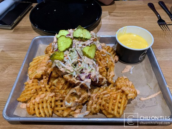 Waffle fries topped with Chipotle mayo, coleslaw, pickles, and sliced Nashville hot chicken.