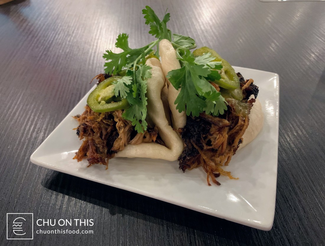 Savory, umami, and spicy flavors were probably the most prominent, with the acidity from the pickled jalapeños and green sriracha also helping to contrast with the meat. The pillowy softness of the bao buns also made for a nice vessel to use to construct the dish around. Each one of the bao buns was about five to seven bites as well, so it was certainly a pretty substantial appetizer for me. But I was definitely happy with how the meal was starting off.